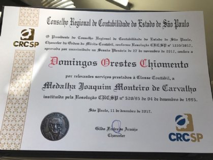 O contador Domingos Orestes Chiomento é pós-graduado em Contabilidade Gerencial e Controladoria e empresário contábil há mais de 50 anos. Domingos foi um dos principais incentivadores da reinstalação da Academia Paulista de Contabilidade - APC, fundada em 1952, no período em que presidia o Conselho Regional de Contabilidade do Estado de São Paulo – CRCSP (gestão 2010-2011).